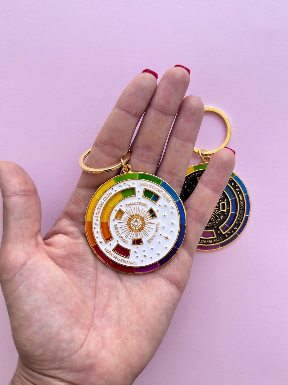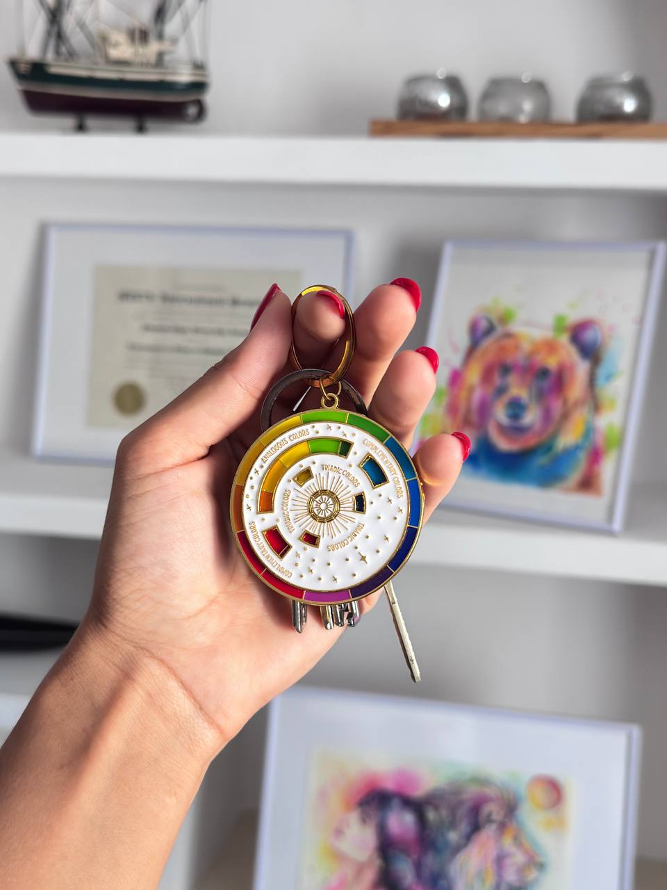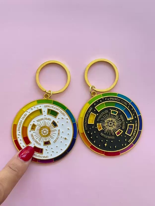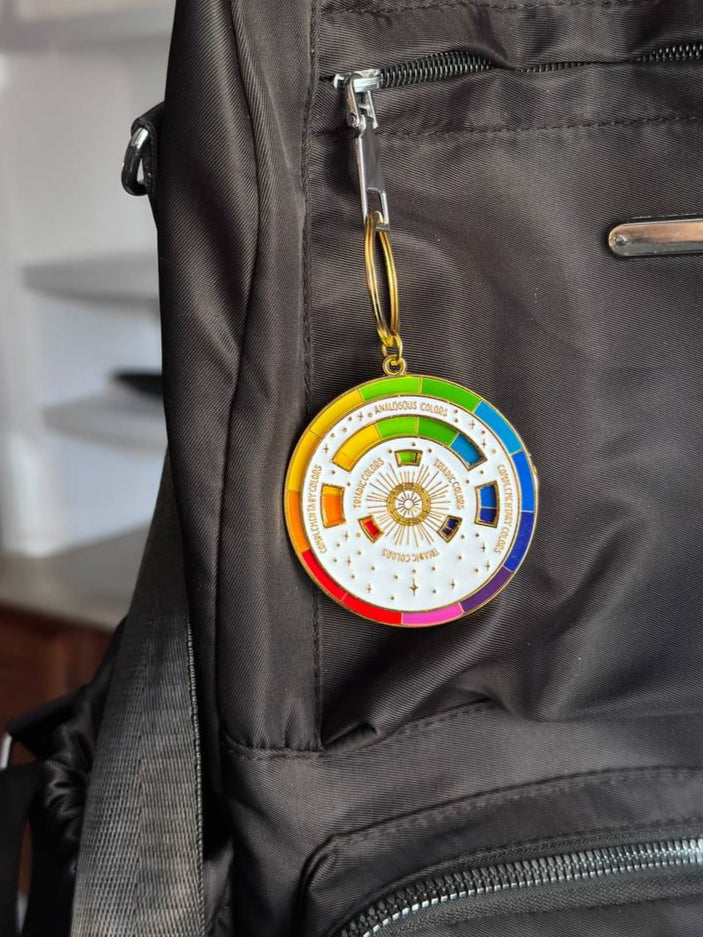 Este llavero funcional y decorativo te permite visualizar combinaciones cromáticas como los colores complementarios, análogos y triadas, de forma rápida y práctica.