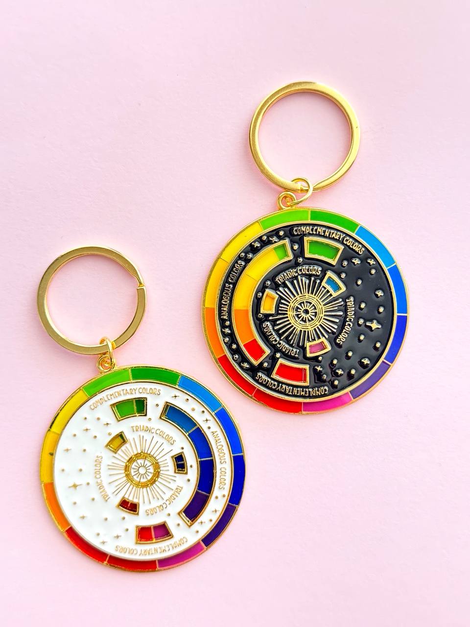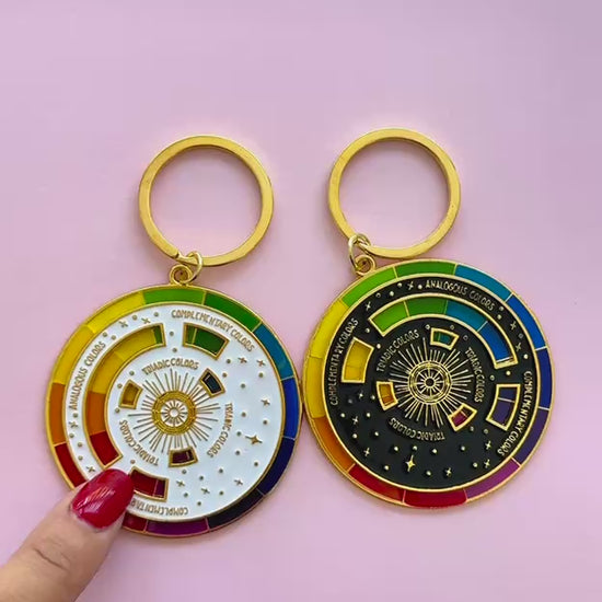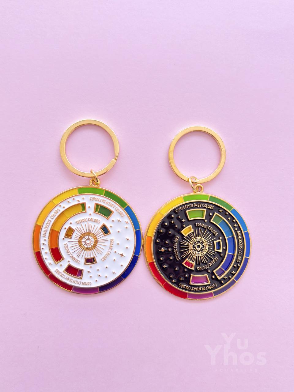 Este llavero funcional y decorativo te permite visualizar combinaciones cromáticas como los colores complementarios, análogos y triadas, de forma rápida y práctica.