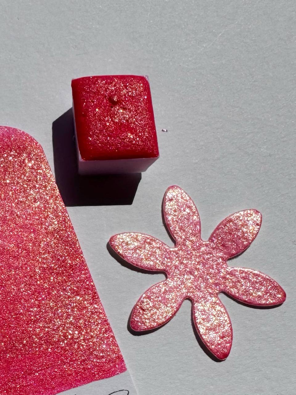 Movie Star es un tono metalizado nacarado rosa brillante con destellos dorados que le dan un acabado elegante y lleno de vida a tus pinturas. Es un rosa único, ligeramente anaranjado y rojizo, que diseñé desde cero para ofrecer algo realmente especial. Su alta cobertura permite una aplicación suave y uniforme sobre el papel, resaltando cada detalle con un brillo sofisticado y vibrante.
