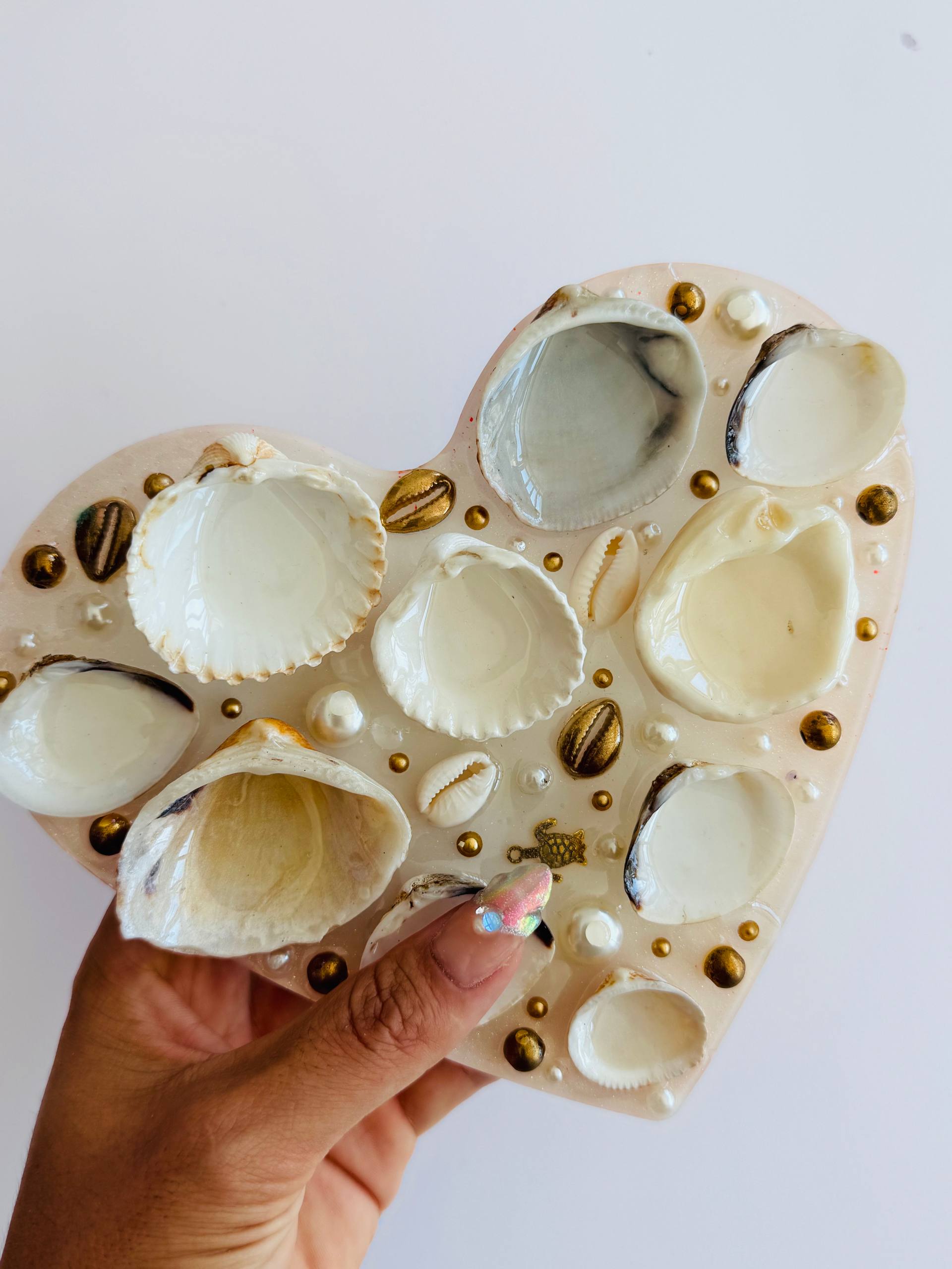 Cada concha de esta paleta tiene una segunda oportunidad. Fueron rescatadas antes de que terminaran como desecho y transformadas con dedicación en una pieza que une arte y funcionalidad.