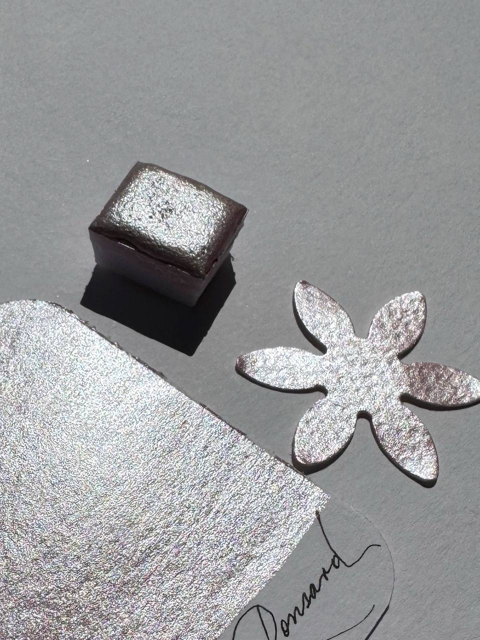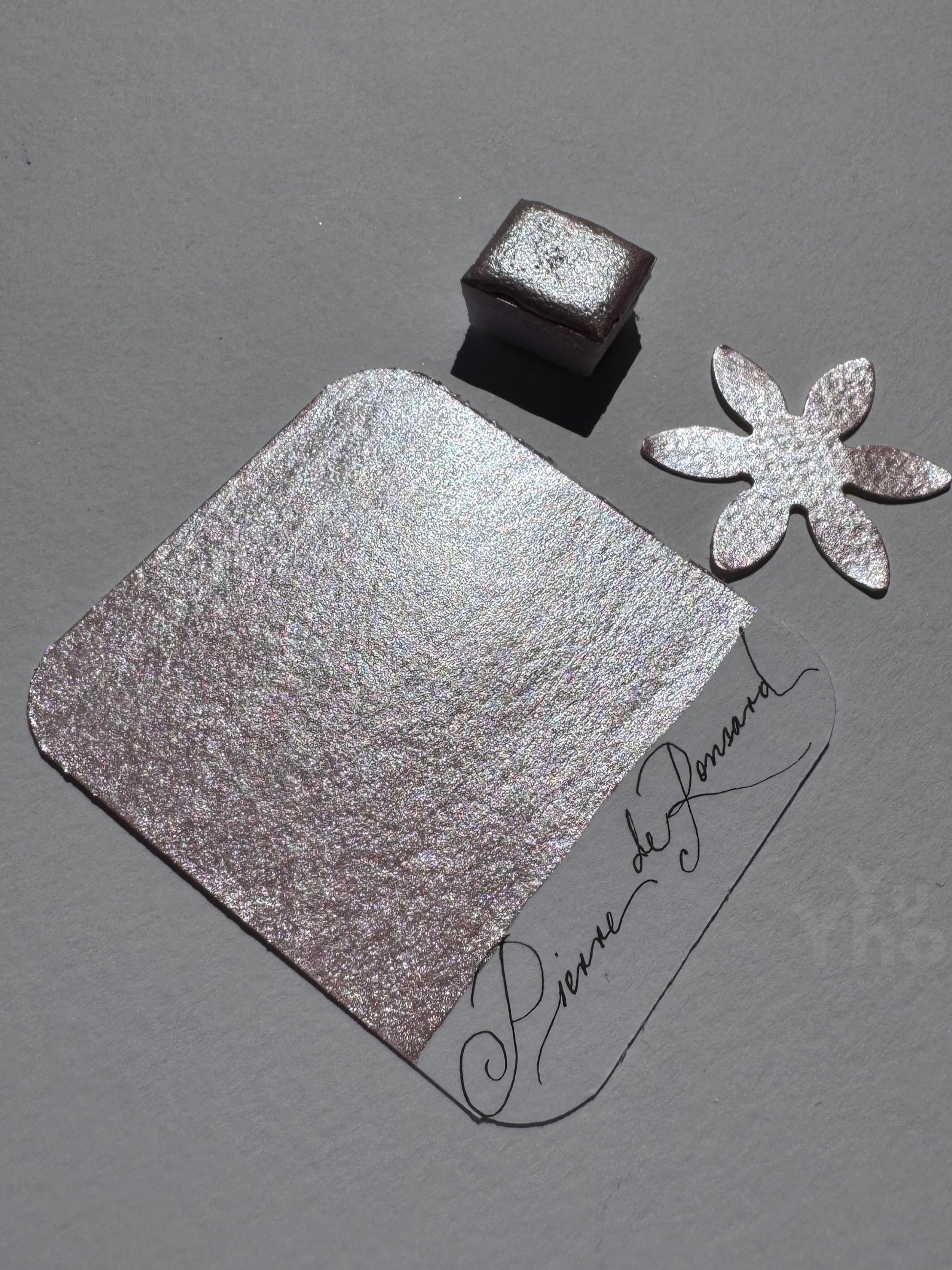 Pierre de Ronsard es un tono metalizado perlado rosa muy claro, que aporta un acabado delicado, elegante y lleno de suavidad a tus pinturas. Es un color único que diseñé desde cero para ofrecer una opción sutil pero llena de personalidad. Su alta cobertura permite una aplicación uniforme y suave sobre el papel, resaltando cada detalle con un brillo refinado y luminoso.