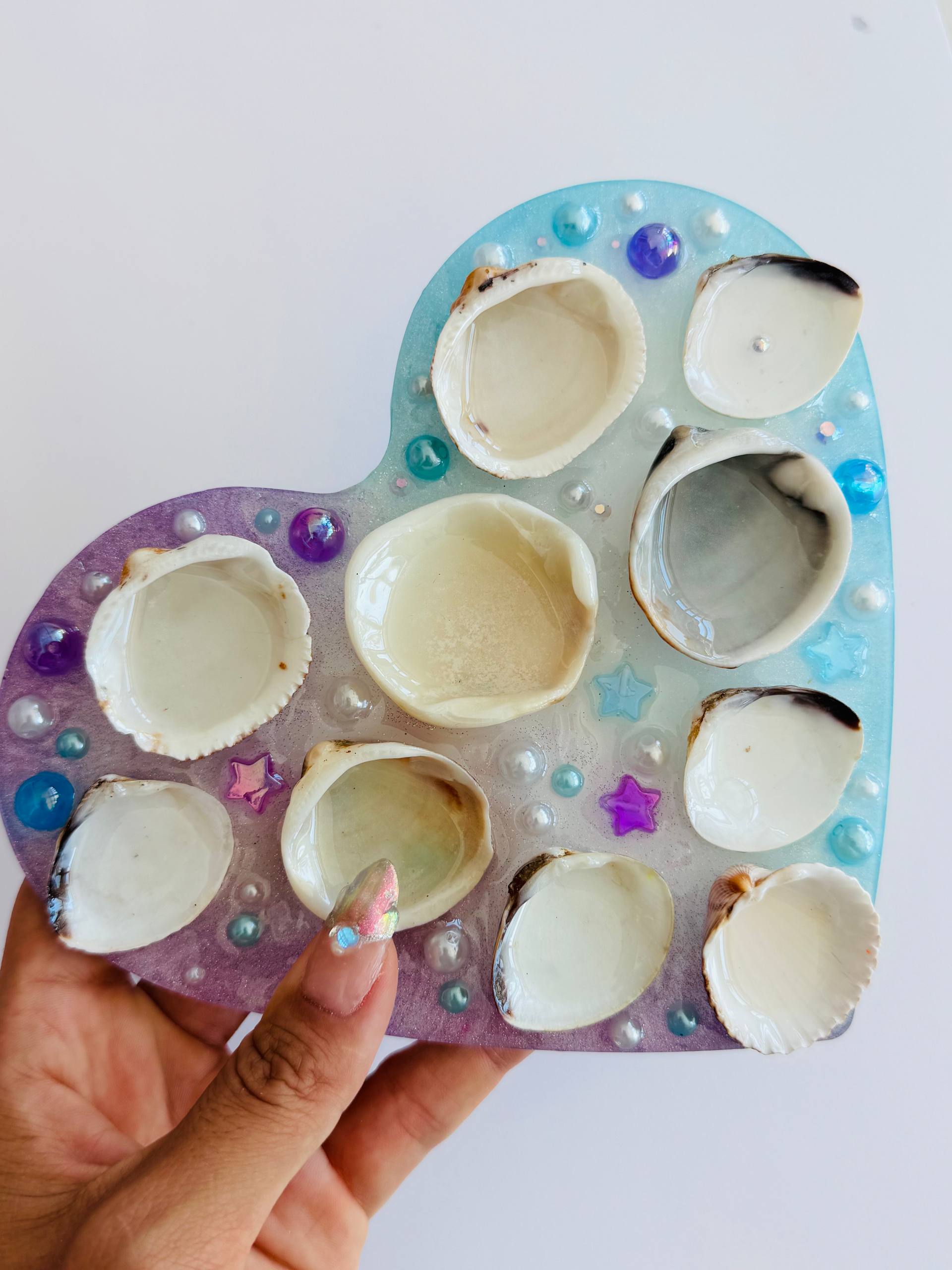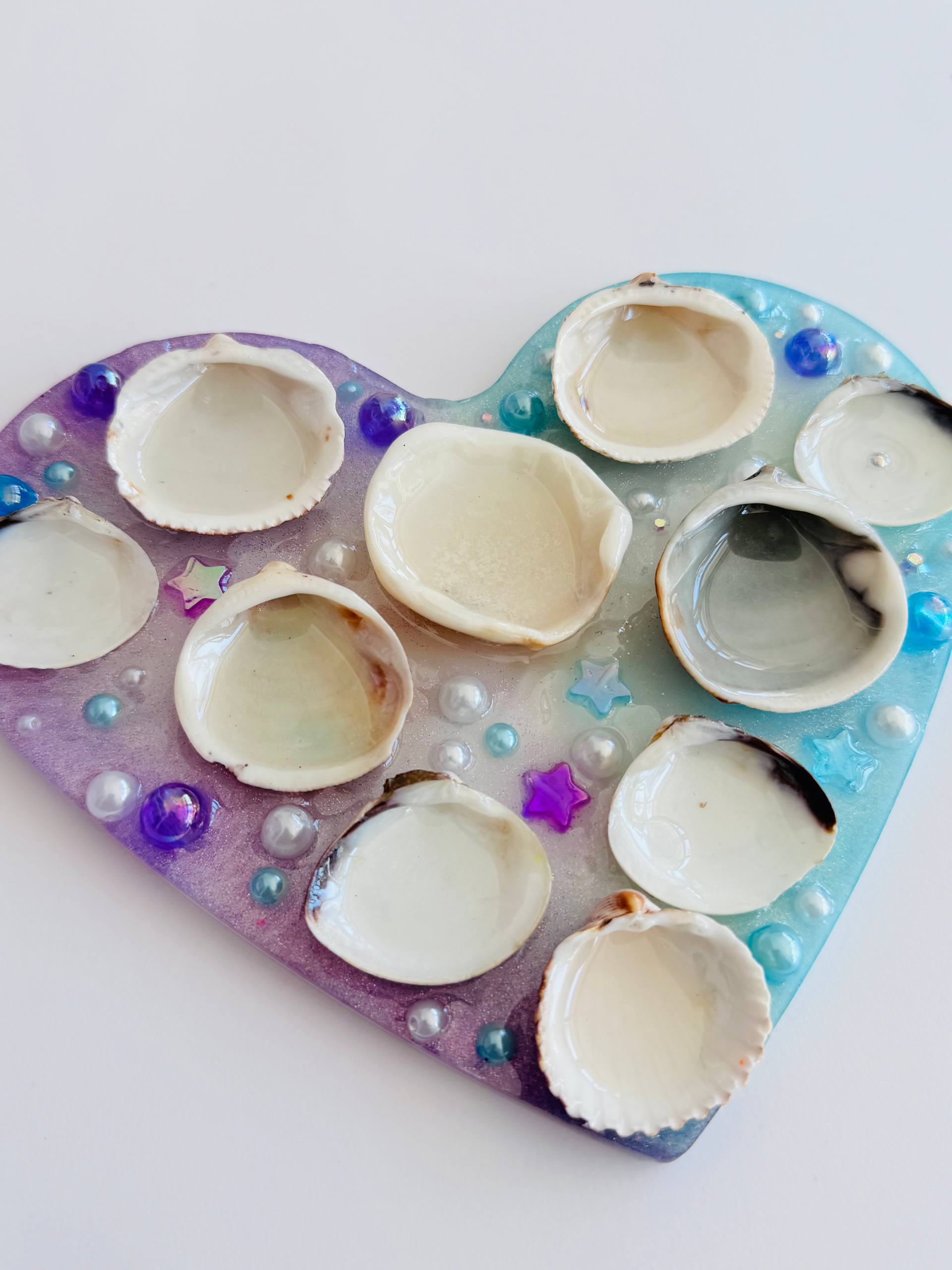Esta pieza combina resina epoxi de alta calidad y conchas recicladas, transformadas con cuidado en una herramienta única para artistas. Lo que antes iba a ser desecho ahora se convierte en inspiración, una pieza que celebra la creatividad y nos permite aportar color y alegría al mundo a través del arte.