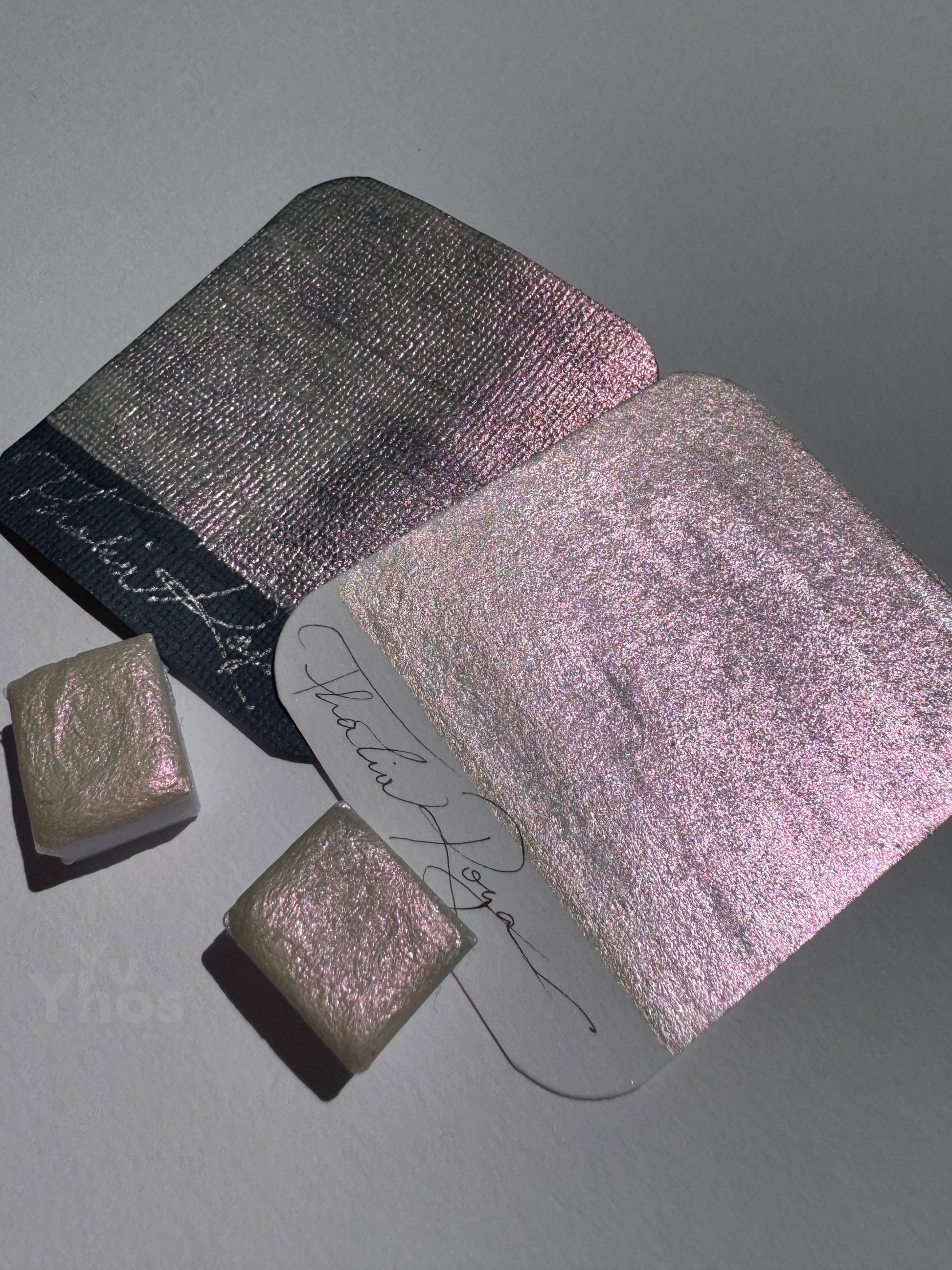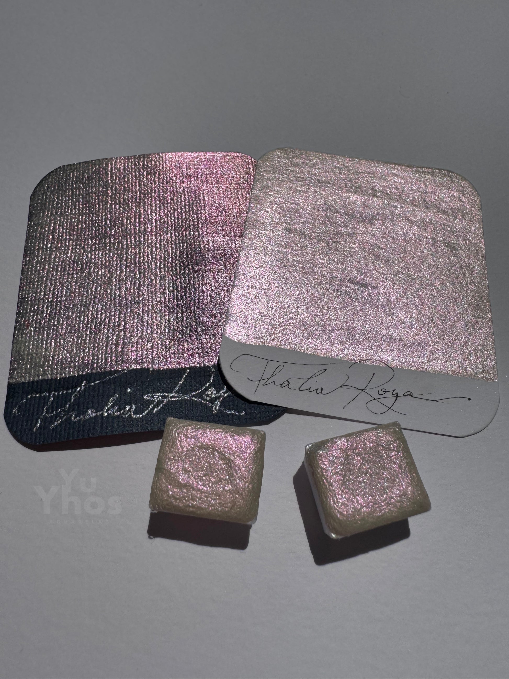 Thalía Roja es un tono metalizado perlado tornasolado en rojo brillante que aporta un brillo especial y elegante a tus pinturas. Tiene muy buena cobertura y se aplica suavemente sobre el papel. Su brillo se revela mejor con luz directa y resalta mucho sobre papel negro, haciendo que cada detalle destaque con un estilo moderno y sofisticado.